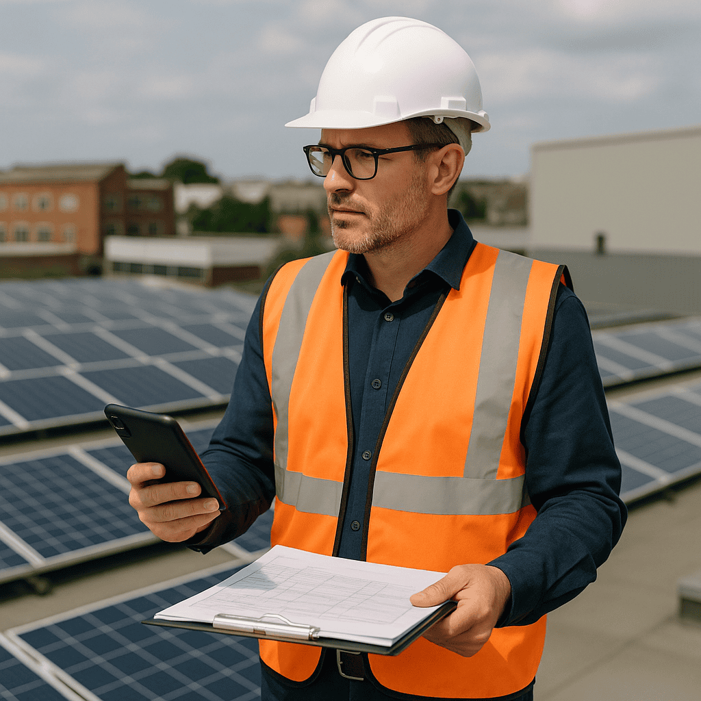 The solar site survey process starts with an initial consultation, where our experts gather key information about your business’s energy needs and site specifics. This step establishes a clear understanding of your goals and the project’s scope. Next, our skilled team conducts an on-site assessment to evaluate factors such as roof structure, shading, and orientation. This detailed examination ensures that the proposed solar installation is both feasible and optimized for maximum energy production. Finally, we provide a comprehensive report with recommendations tailored to your business, including potential solar layouts, estimated energy savings, and cost analysis. Our focus is on delivering a customized solution that meets your unique requirements while maximizing your return on investment. By following this structured process, we ensure that your business solar project is planned and executed with precision and confidence.