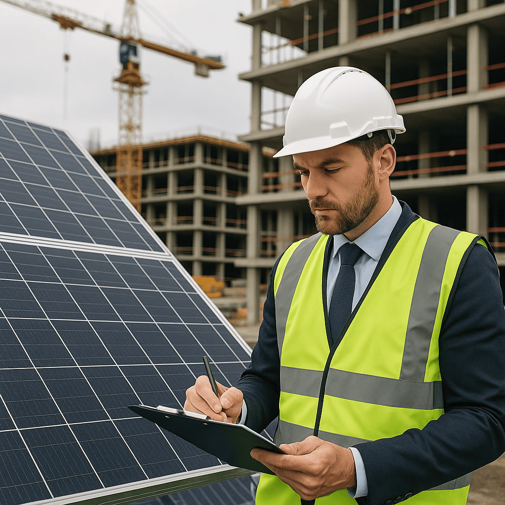What are the regulatory requirements for installing solar panels on construction sites?