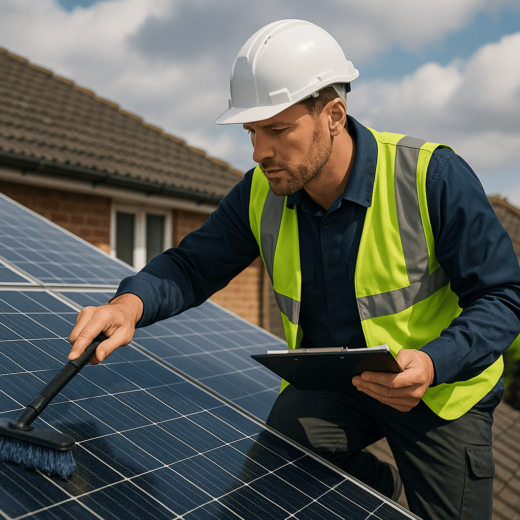Solar panels should ideally be cleaned and maintained at least once a year to ensure optimal efficiency. However, in areas with heavy dust, pollen, or bird activity, more frequent cleaning may be necessary to prevent performance issues.