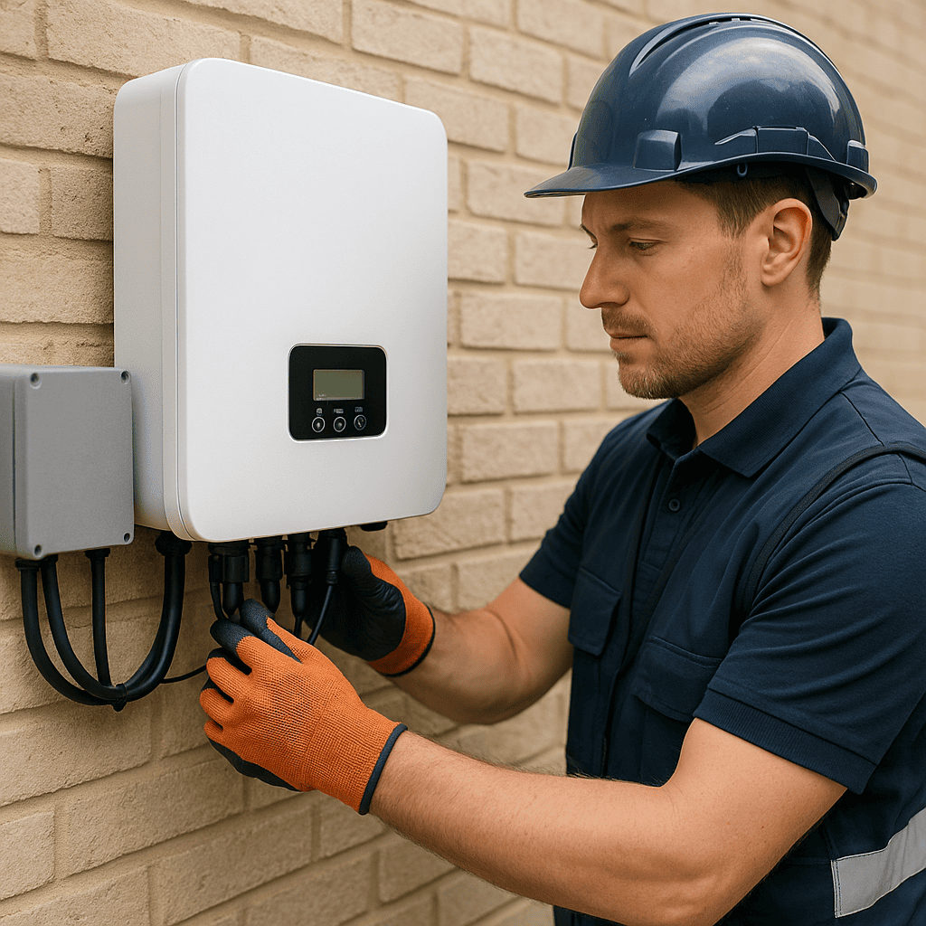 Hybrid inverters manage both solar energy generation and battery storage, allowing users to utilise solar power efficiently and store excess energy for later use.
