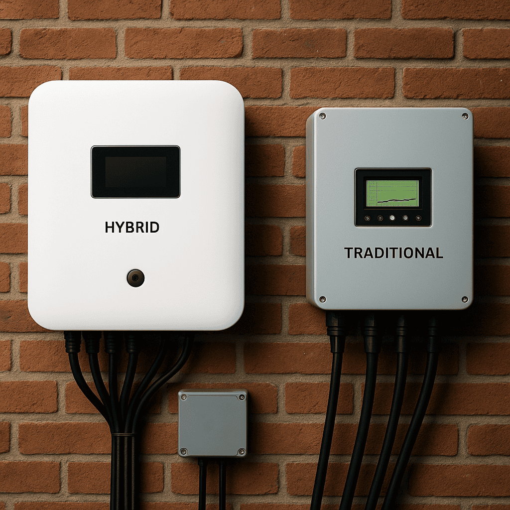 How do hybrid inverters compare to traditional inverters in terms of efficiency and cost?