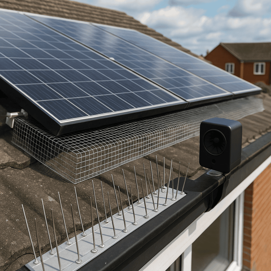 Another effective solution is the use of bird spikes. These spikes are placed strategically on the edges of the panels and other flat surfaces where birds are likely to perch. While the spikes are designed to deter birds, they are humane and do not harm the animals. This option is particularly useful for areas with high bird activity.