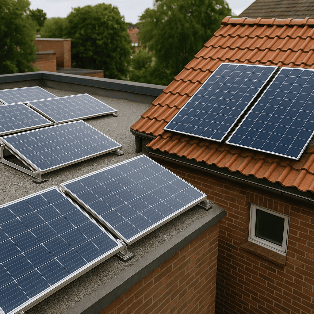 How do installation costs for solar panels on flat roofs compare to pitched roofs?