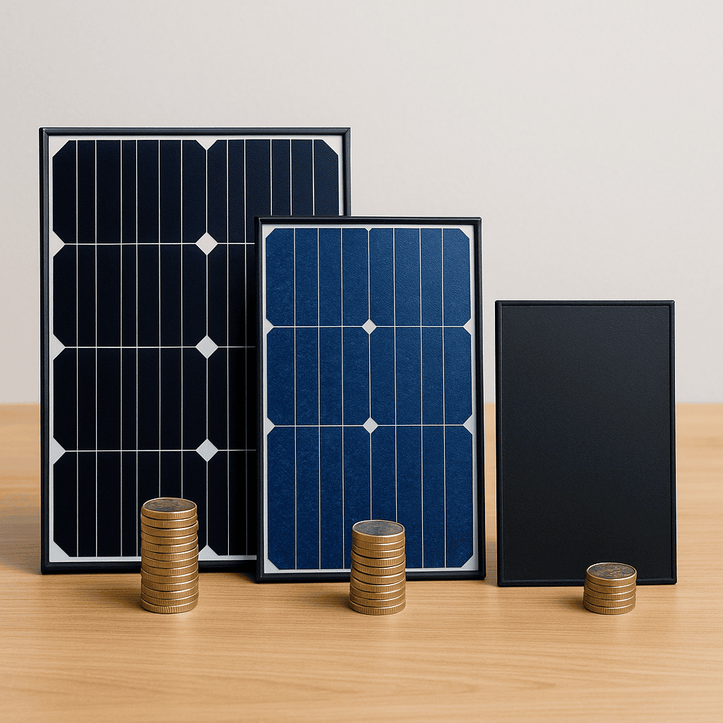 Thin-film panels are the least expensive option and are known for their flexibility and lightweight characteristics. However, they typically offer lower efficiency compared to crystalline panels, meaning that more space is required to achieve the same energy output. While they offer a cost-effective solution in the short term, their lower efficiency may result in higher costs over the lifespan of the system due to increased space and installation requirements.