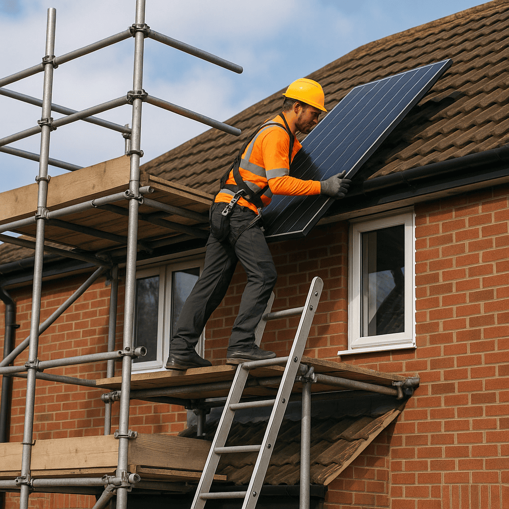Once scaffolding is in place, the installation team can use ladders or scaffolding towers to reach the desired area of the roof. Safety harnesses and other personal protective equipment are utilised to minimise any risk of falls or accidents. These precautions are particularly important given the heights involved and the need to carry heavy solar panels.